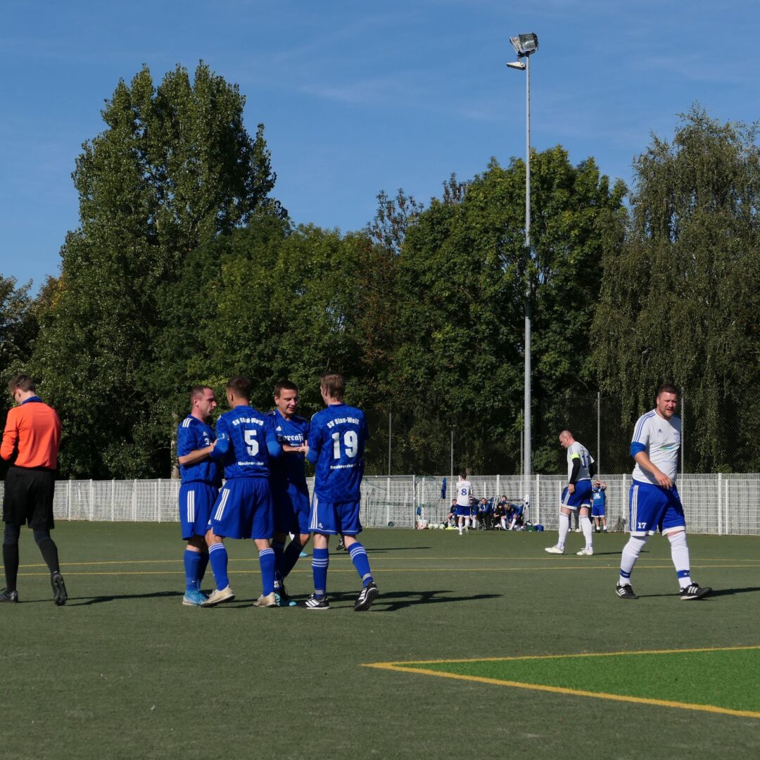 Nach 7 min im zweiten Spielabschnitt leitet der eingewechselte Thomas Hönig einen Angriff ein, spielt auf Stahlkopf, der scheitert an Tormann Bock, aber Hönig läuft schulbuchmäßig durch und schießt den Abpraller ins Tor. Nach einiger Zeit, die zwar aufregend aber ohne Änderungen des Ergebbnisses auf dem Platz verlief, tritt Stahli 8 min vor dem Ende zum Freistoß an, der wird irgendwie halb abgewehrt, landet aber beim Chef der Verteidigung Felix Jürß, der auf einmal vorm Tor des Gegners steht und souverän unter dem Keeper einschiebt. Anschließend hebt Stahli den Ball noch gefühlvoll über das Tor und Kevin Kulow setzt dann nach einem guten Pass auf ihn zum den Schlusspunkt an. Auch er verwandelt sicher und wir gewinnen vor 70 Zuschauernit 5:2.